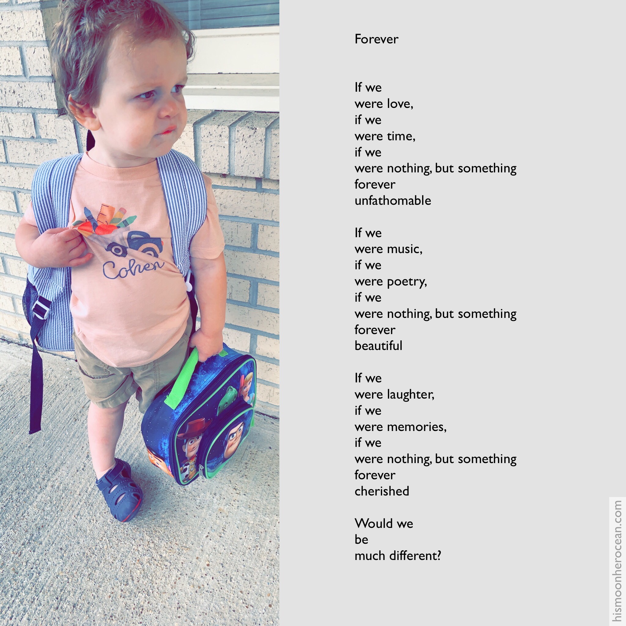 This is a poem I wrote long ago, but never had a photo I liked to go with it. This photo of my grandson headed to his first day of preschool spoke to me.