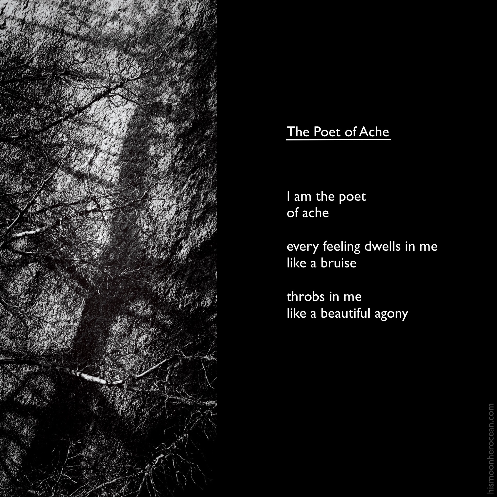 Poet of Ache hismoonheroceanFebruary 16, 2020March 6, 2020poetry Post navigation PreviousNext Share this: Click to share on X (Opens in new window) X Click to share on Facebook (Opens in new window) Facebook Like Loading...