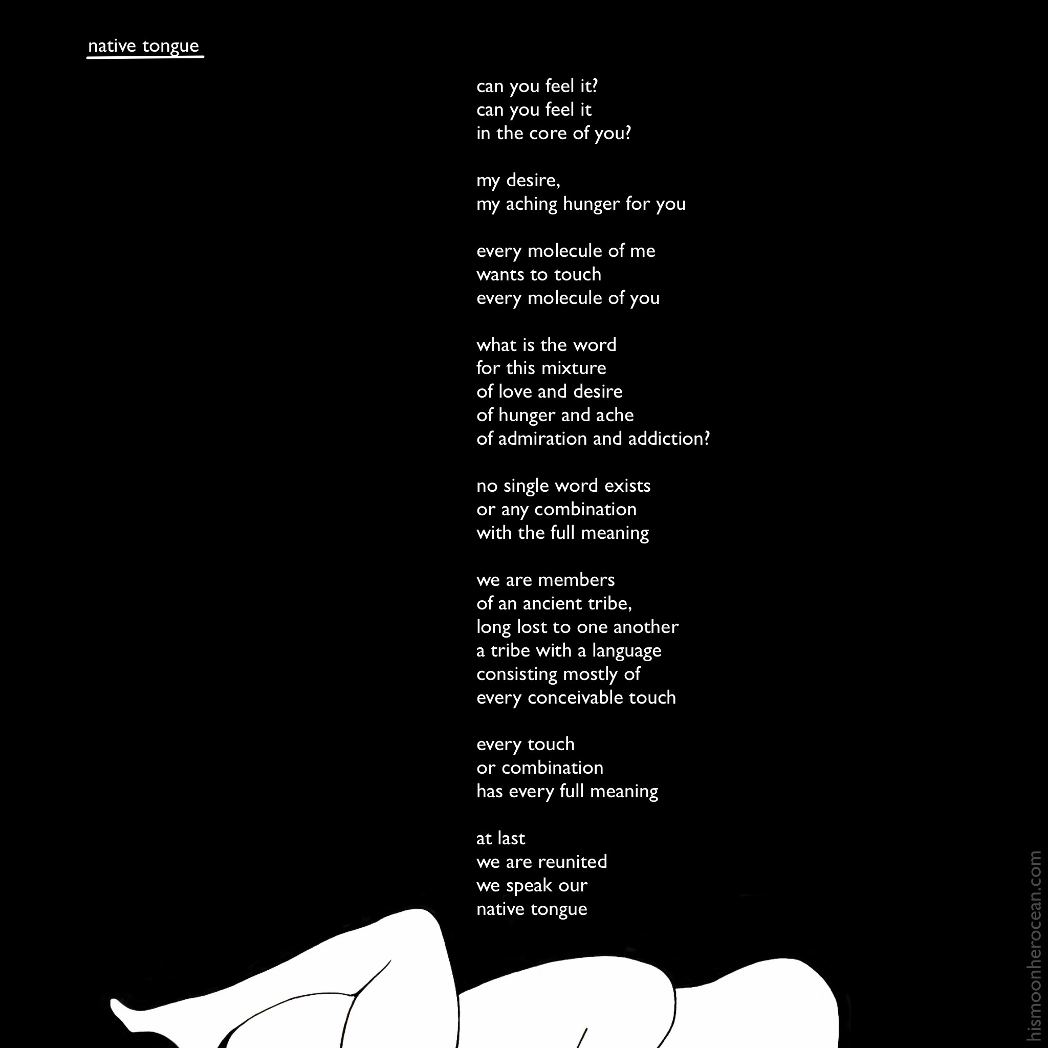 native tongue hismoonheroceanFebruary 20, 2020poetry Post navigation PreviousNext Share this: Click to share on X (Opens in new window) X Click to share on Facebook (Opens in new window) Facebook Like Loading...
